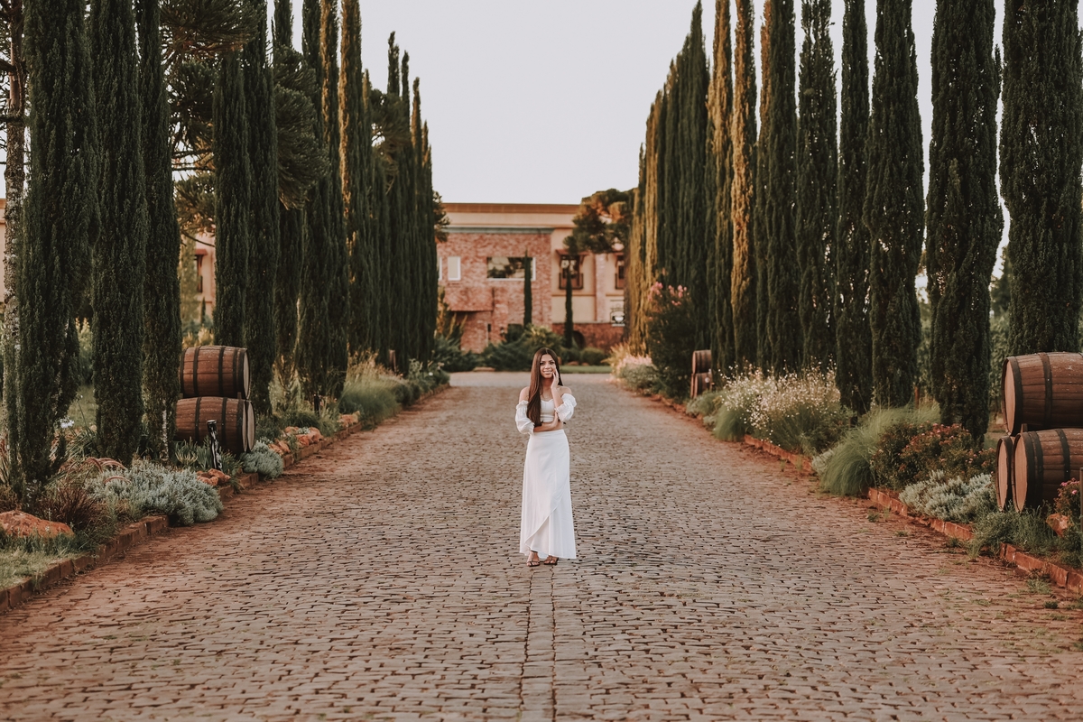 A Emilly escolheu a vinícola Campestre como cenário para seu ensaio de 15 anos, onde a beleza das parreiras e o charme rústico se misturaram ao pôr do sol. Em cada clique, sua personalidade desabrochava, refletindo a leveza e a intensidade dessa fase tão especial da vida. Aos 15 anos, Emilly está no limiar entre a infância e a juventude, irradiando sonhos, sorrisos e uma alegria contagiante. O ensaio capturou não apenas sua beleza, mas também a magia desse momento de transição, iluminado pela natureza e pela luz suave do entardecer.