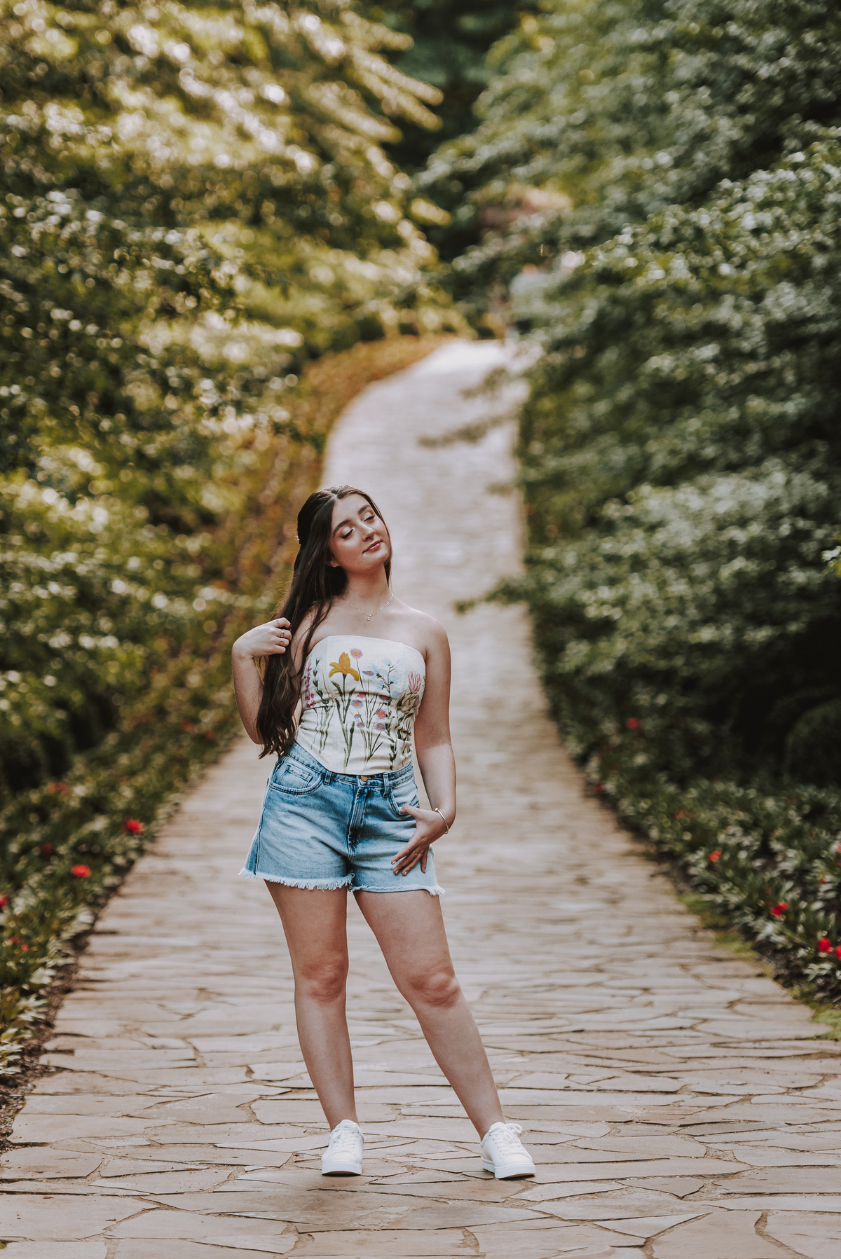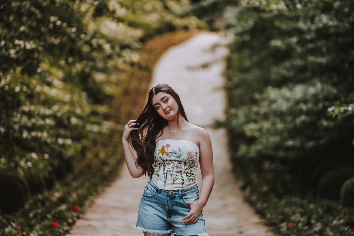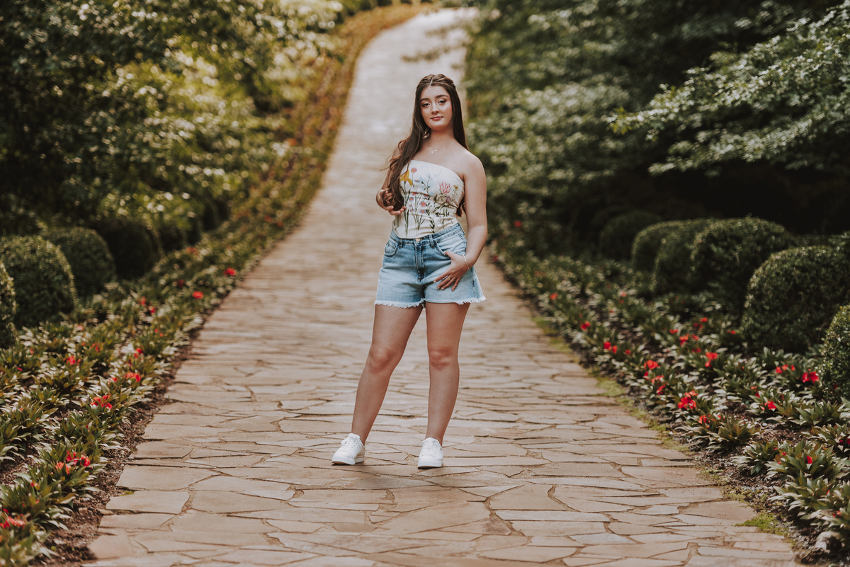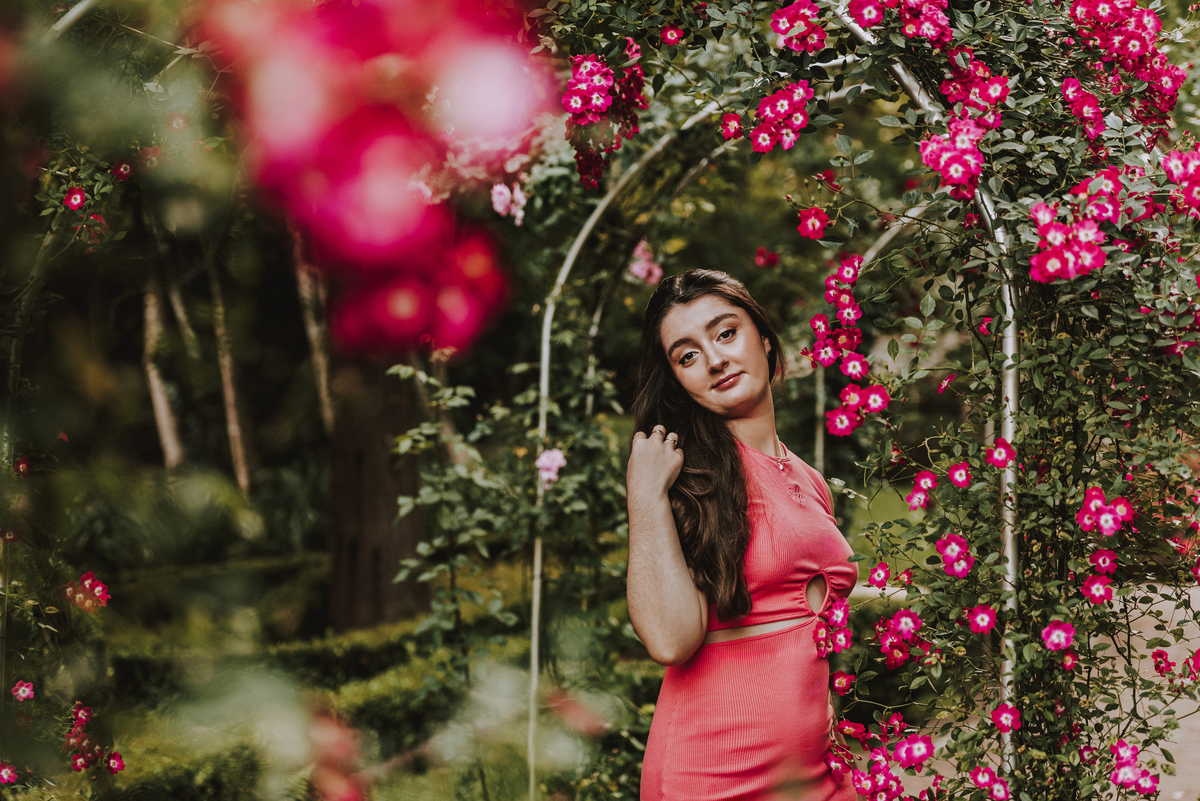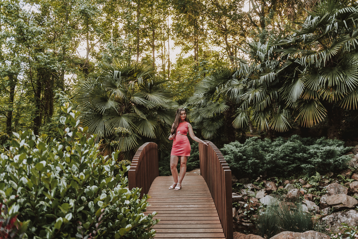 Mas a magia do ensaio não parou por aí. Durante a tarde, seguimos para o Garden Park, um lugar que encanta por sua natureza exuberante e vibrante. Nesse cenário, trouxemos um toque contemporâneo ao ensaio, criando uma harmonia perfeita entre o clássico e o moderno. As cores, as luzes e a energia do parque refletiram a personalidade alegre e única da Isadora, tornando o ensaio ainda mais especial.