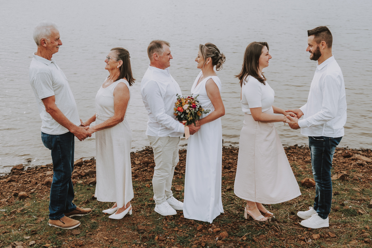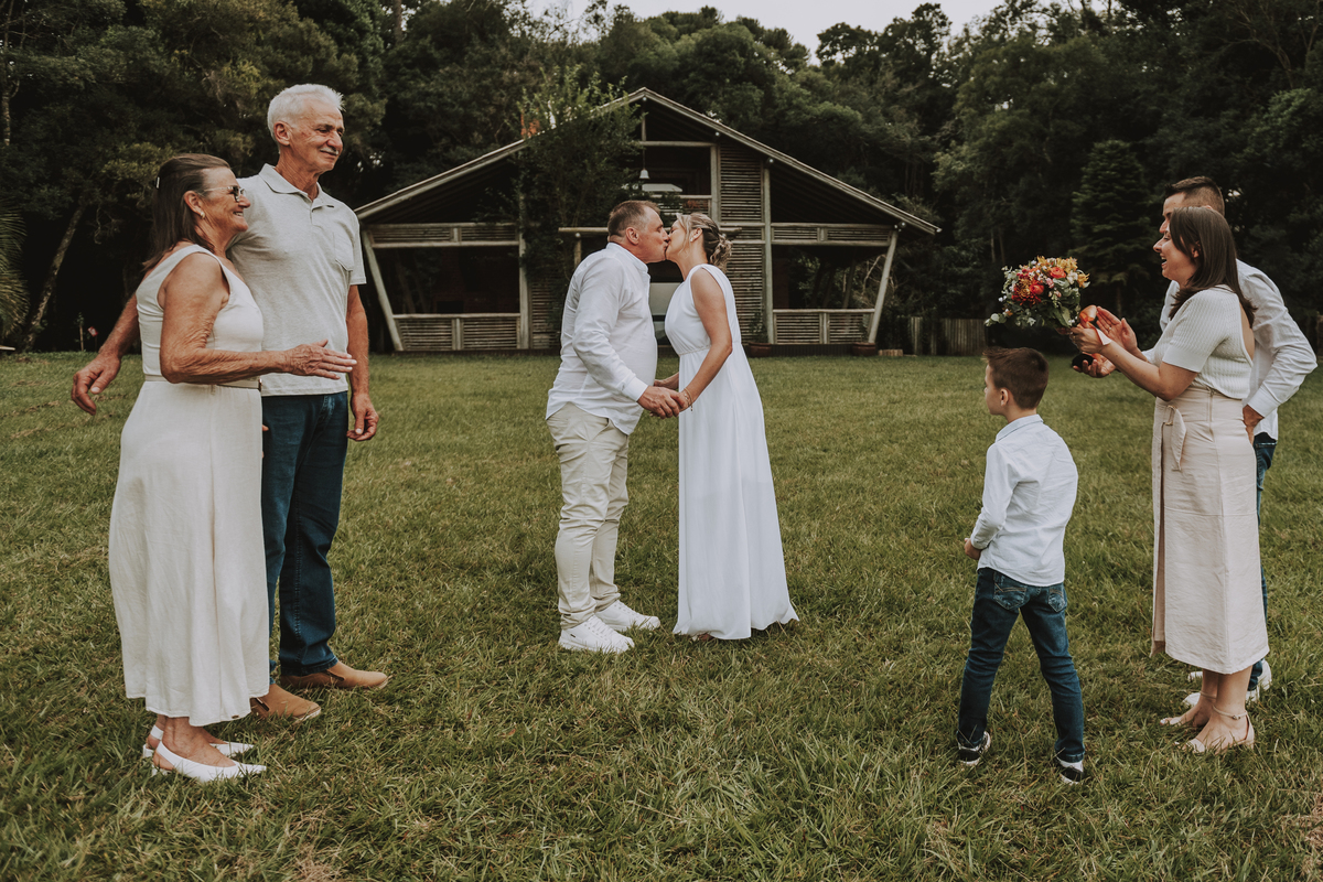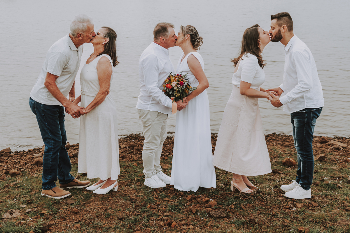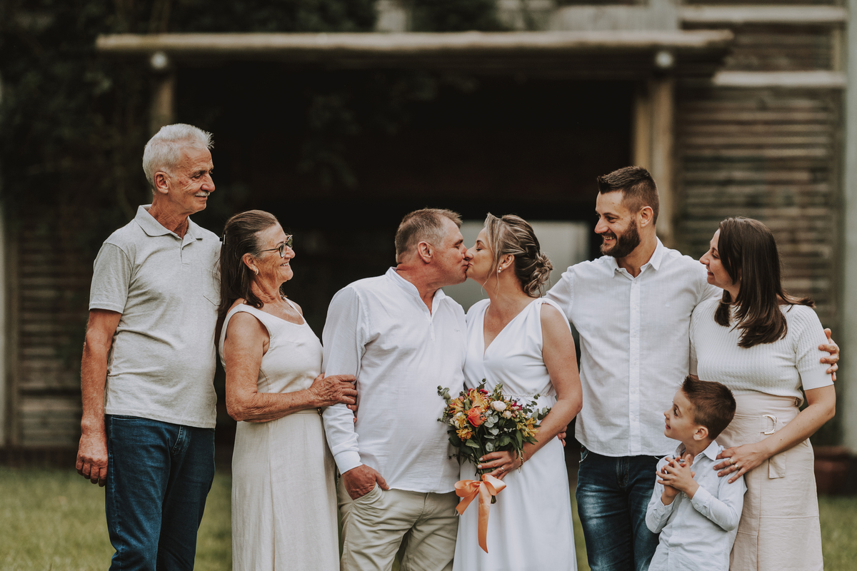 Celebramos não apenas um casal, mas uma trajetória de cumplicidade, de conquistas e de amor multiplicado. Fotografamos também o casamento da Adri, a filha que nasceu desse amor. E seguimos, com o mesmo carinho, acompanhando os passos do Pietro, neto querido que ilumina a nova geração da família.