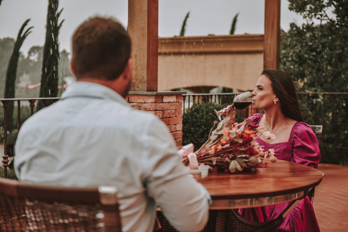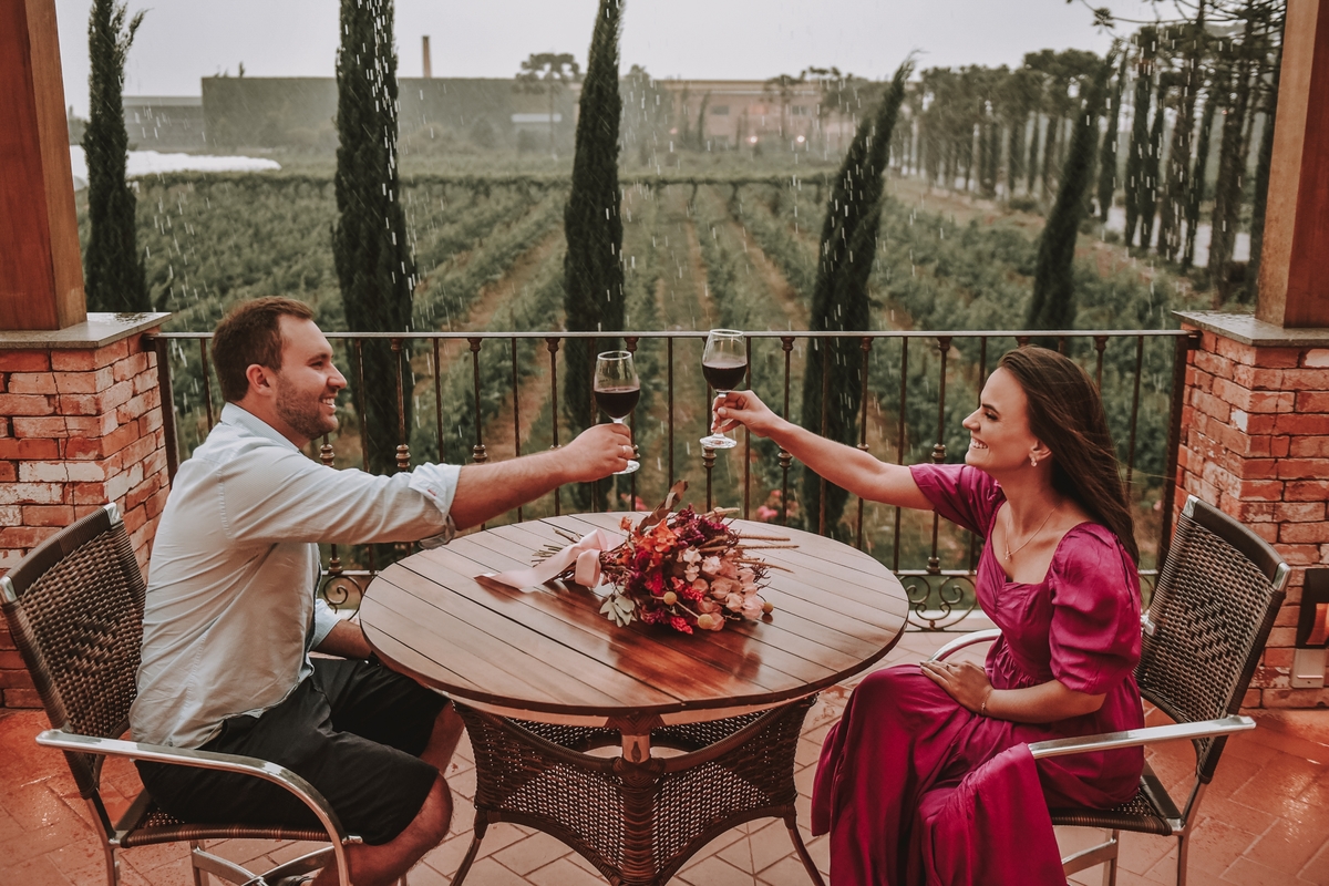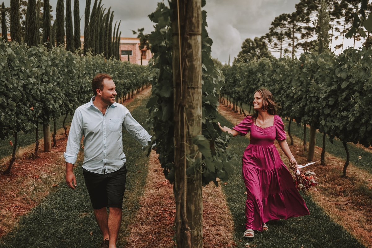 No ensaio pre wedding de Dani e Lucas, realizado na charmosa Vinícola Campestre, a conexão incrível entre o casal foi o destaque. A chuva, que normalmente causaria preocupação, foi recebida com serenidade por Dani, que disse: "Não tem problema, o dia foi perfeito, como Deus planejou!". Cada clique capturou a cumplicidade e o amor deles, em meio à beleza rústica das vinhas e à atmosfera romântica do local. O resultado? Fotos encantadoras que eternizam esse momento especial de forma inesquecível.
