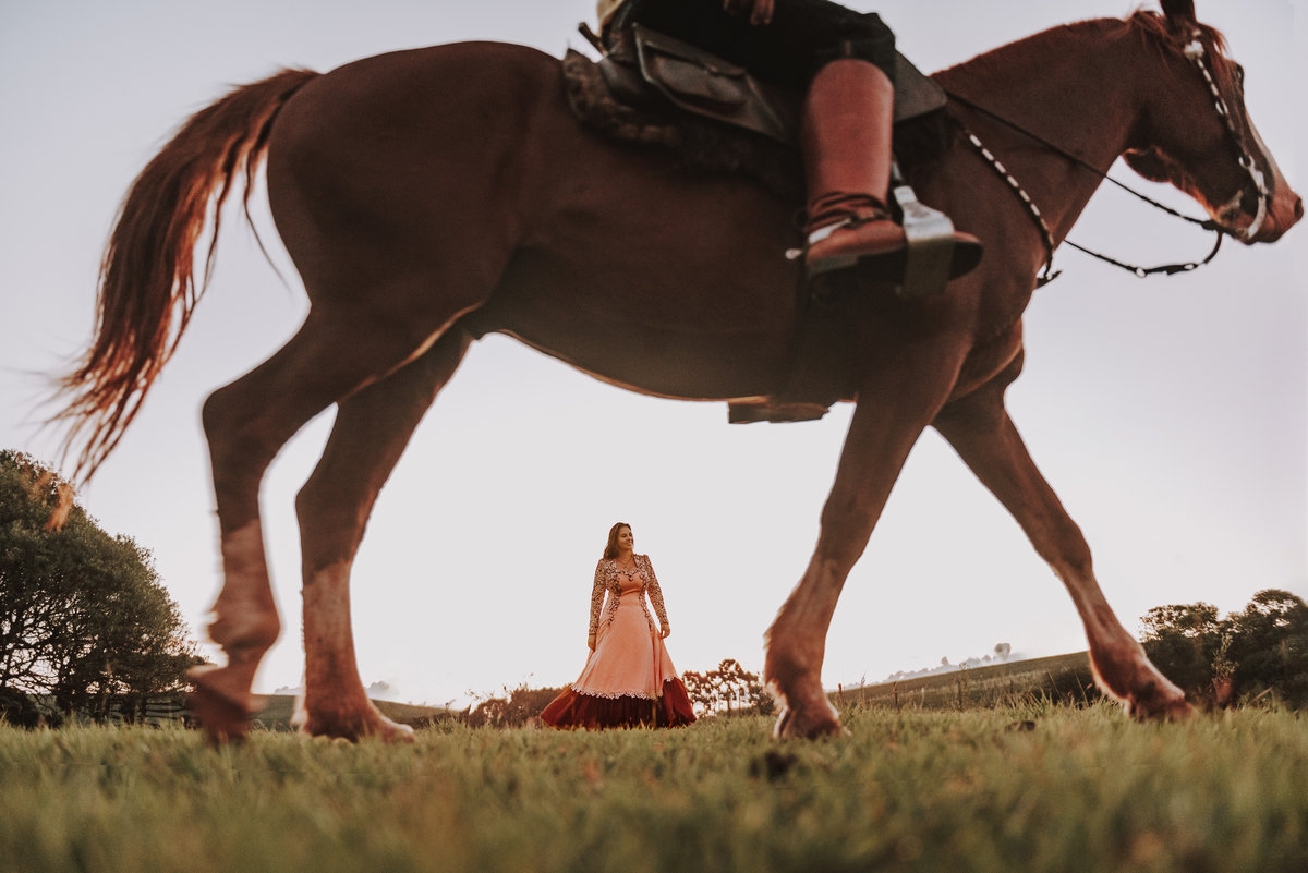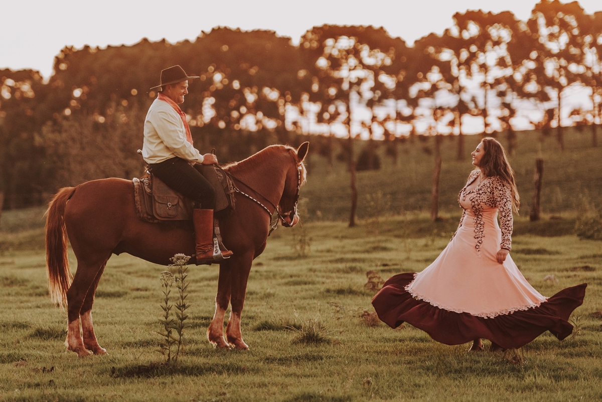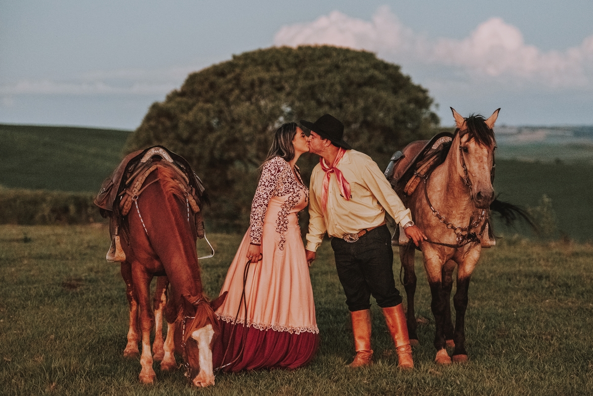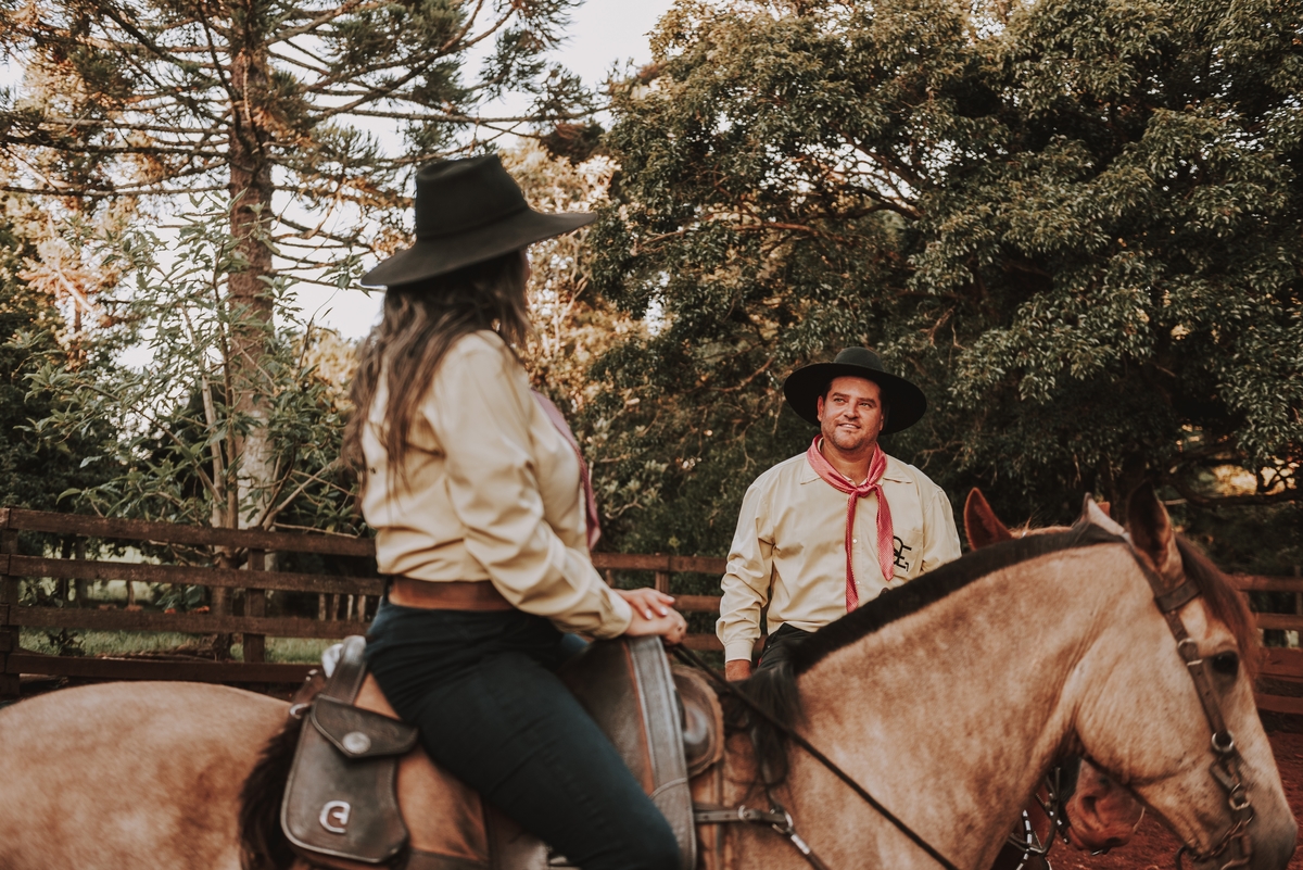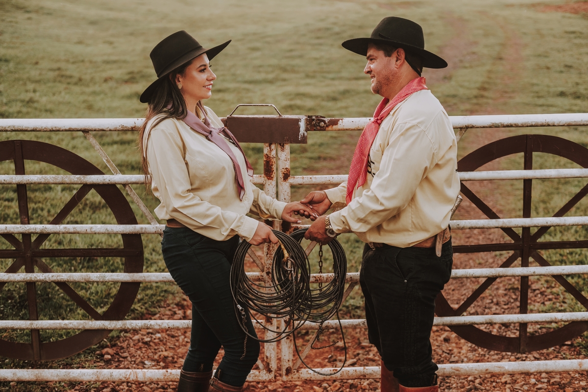 Sheila e Alceu são um casal que compartilha uma paixão genuína pelo campo e pelos rodeios. Para o ensaio pre wedding, Sheila escolheu a fazenda da família, o lugar onde nasceu, cresceu e que será o futuro lar do casal. Esse local carrega toda a história e as raízes que ambos valorizam profundamente. O amor pela terra e pelas tradições do campo está refletido em cada clique, tornando as fotos uma representação fiel do que eles são e do que acreditam.