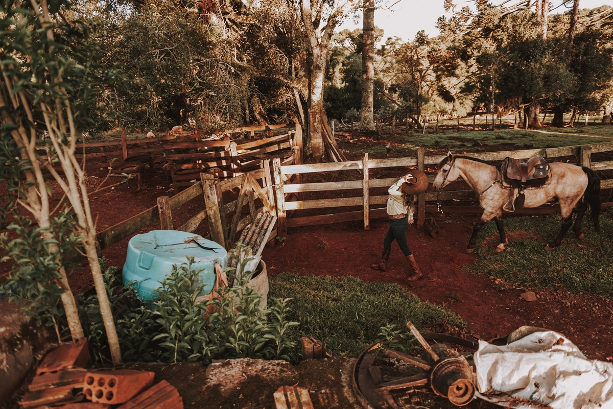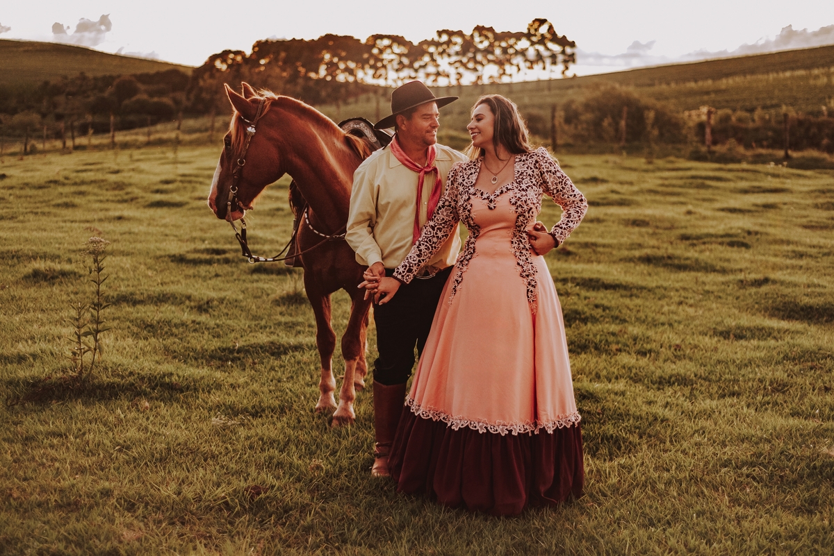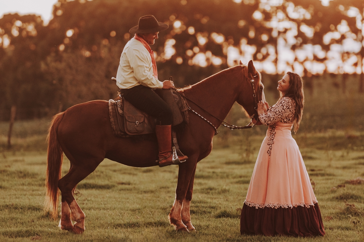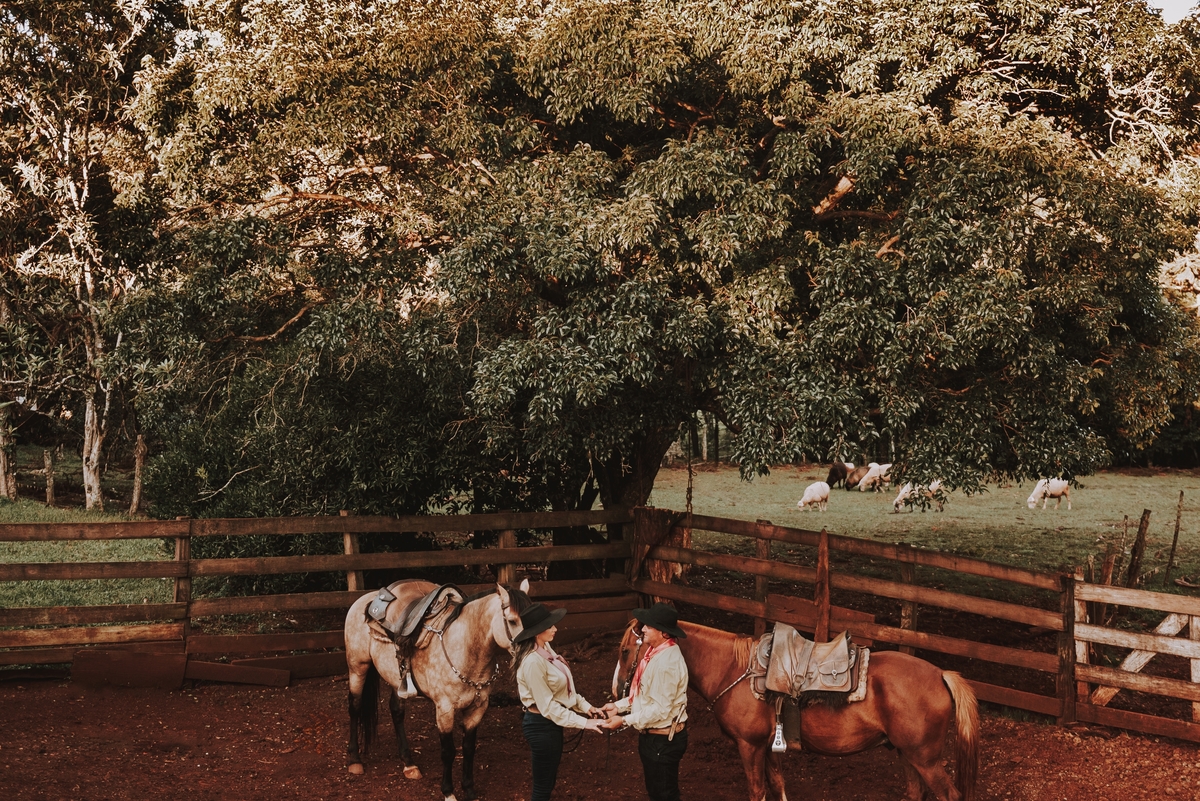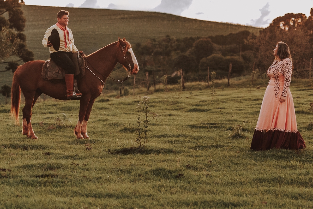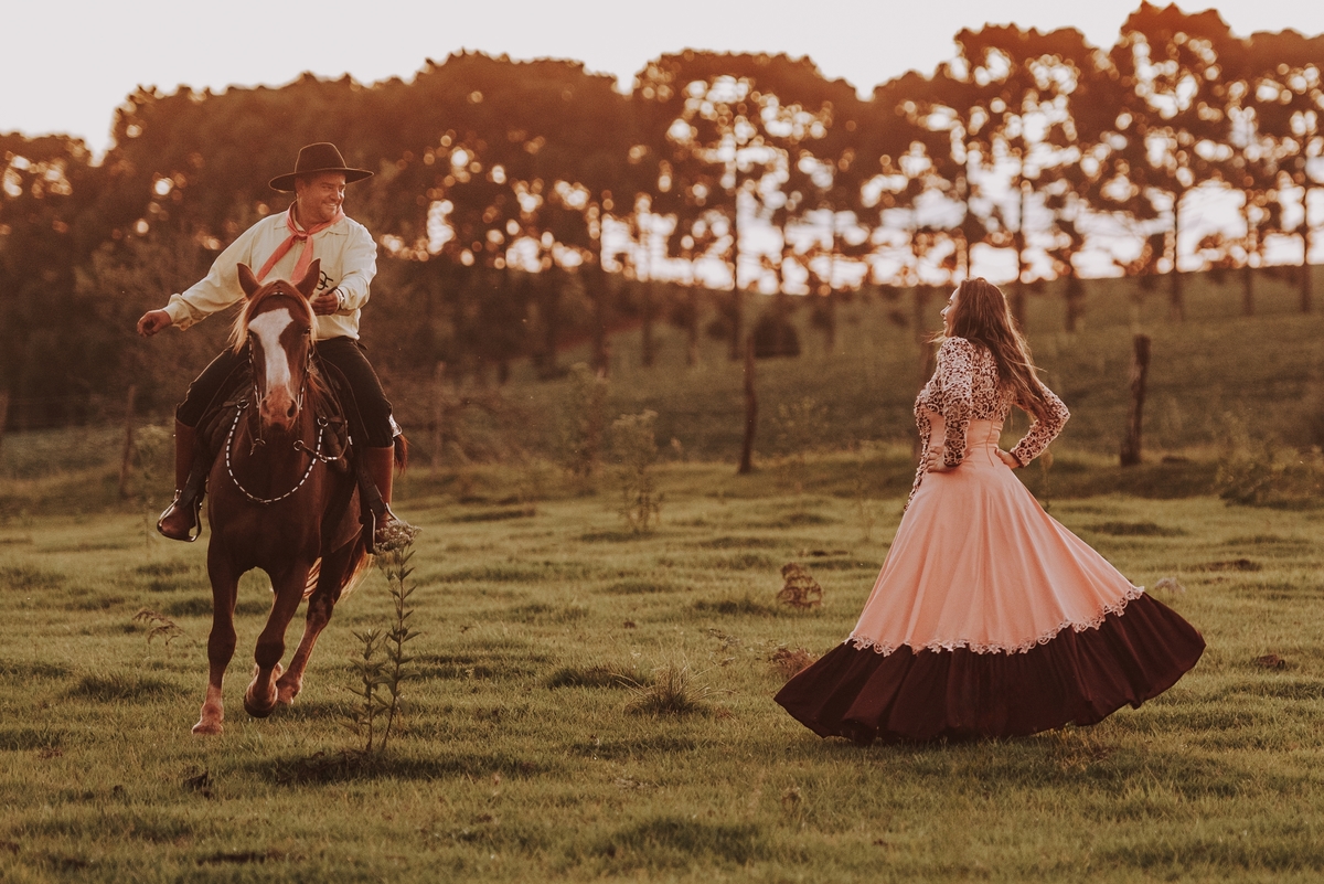Sheila e Alceu são um casal que compartilha uma paixão genuína pelo campo e pelos rodeios. Para o ensaio pre wedding, Sheila escolheu a fazenda da família, o lugar onde nasceu, cresceu e que será o futuro lar do casal. Esse local carrega toda a história e as raízes que ambos valorizam profundamente. O amor pela terra e pelas tradições do campo está refletido em cada clique, tornando as fotos uma representação fiel do que eles são e do que acreditam.
