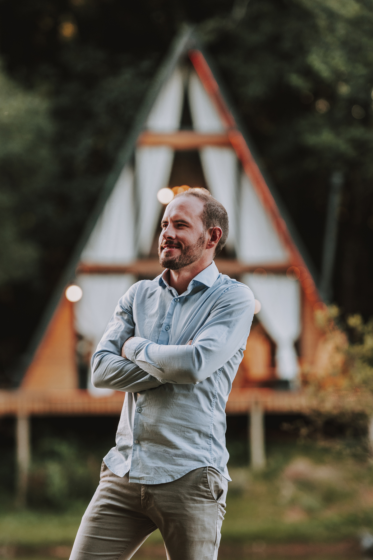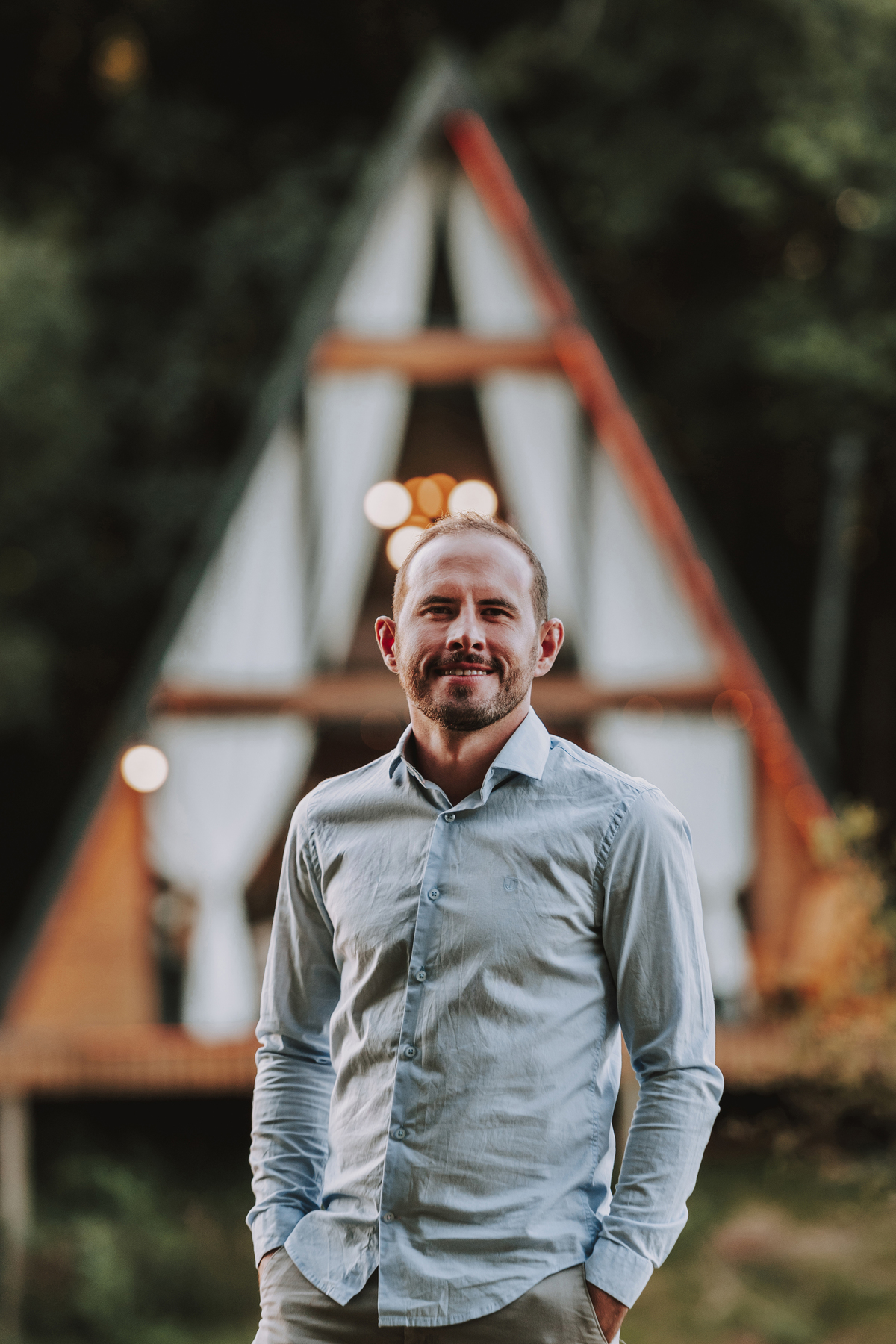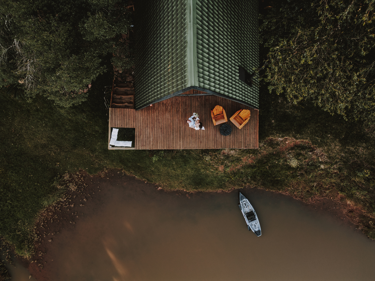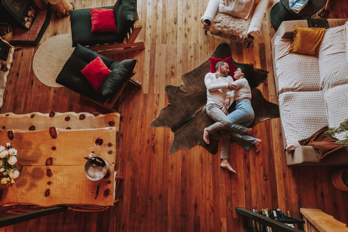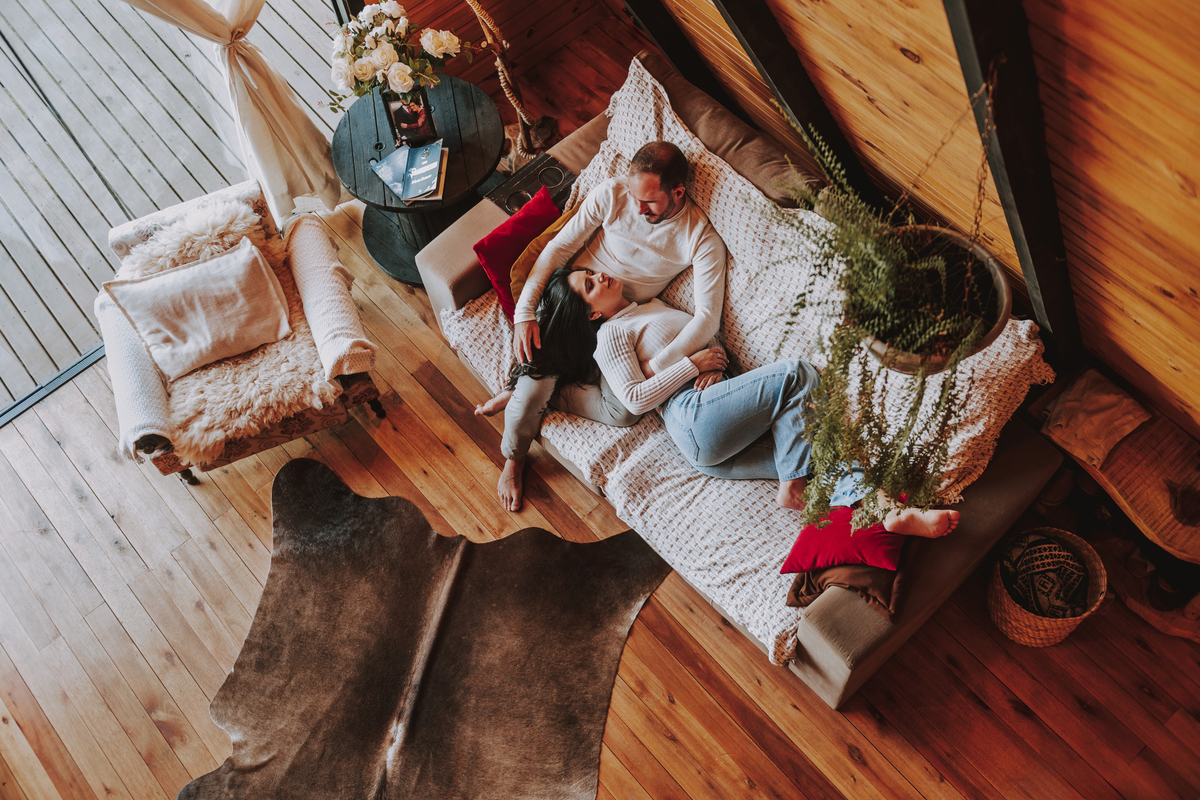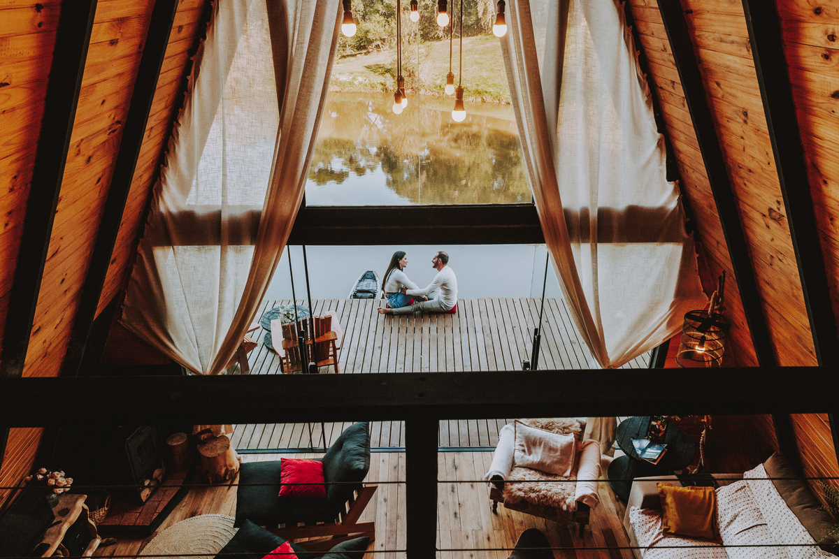 Eles escolheram como cenário a cabana que construíram juntos, com as próprias mãos e muitos sonhos. Um refúgio feito de madeira, fé e carinho. Ali, cada objeto tem história: os móveis esculpidos pelo Gabriel, os símbolos de religiosidade que decoram com leveza, os cantinhos que guardam memórias e significados. É mais que um lugar — é um espelho da vida que estão construindo lado a lado.