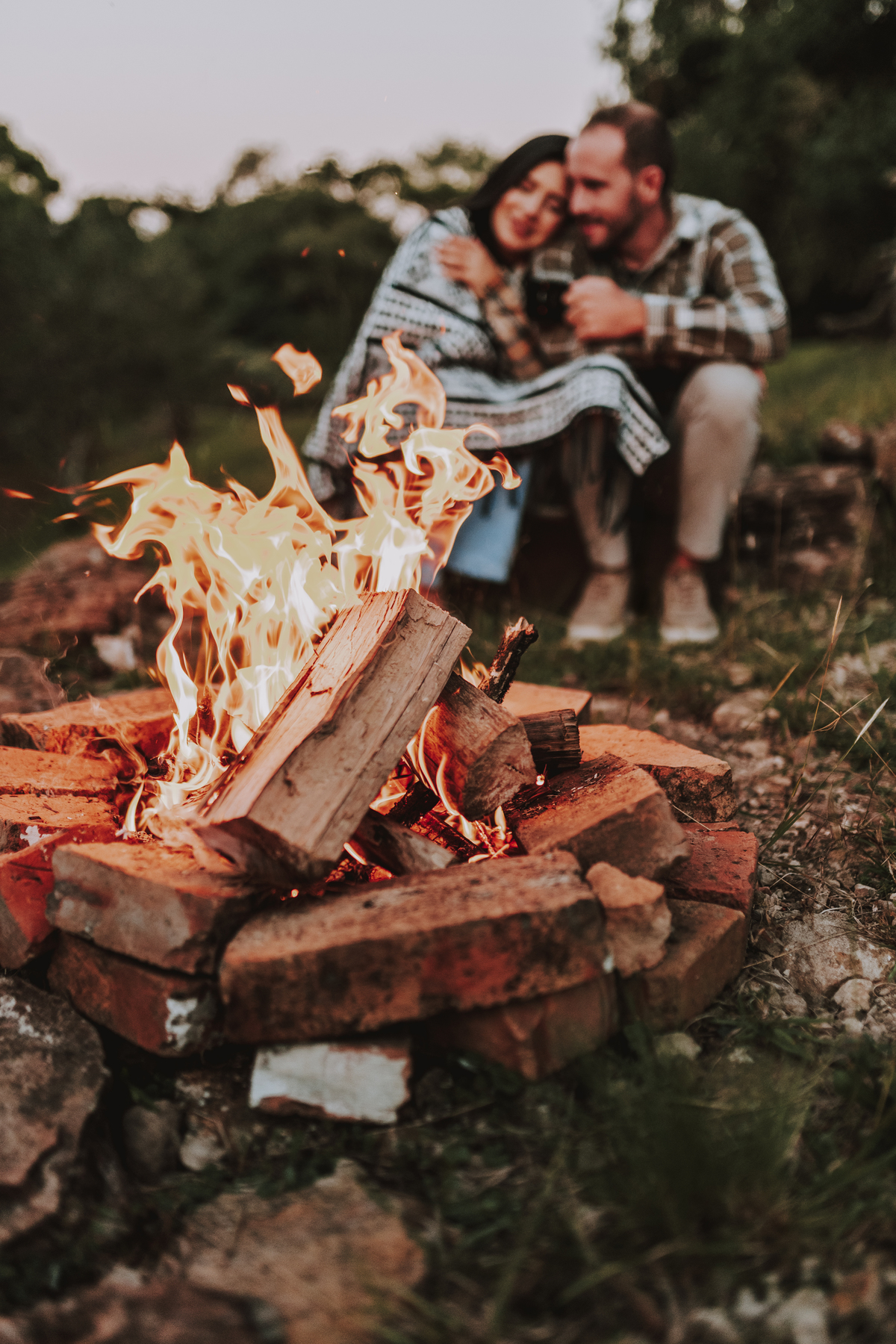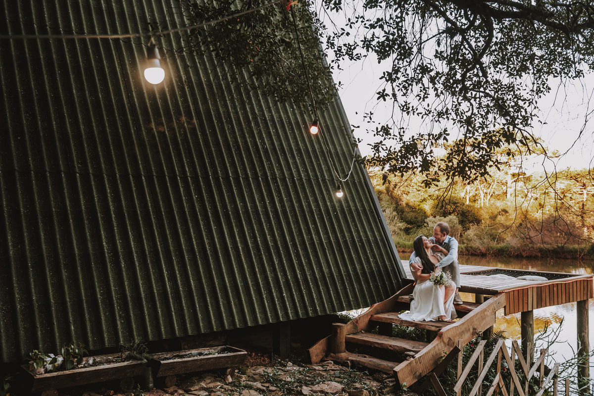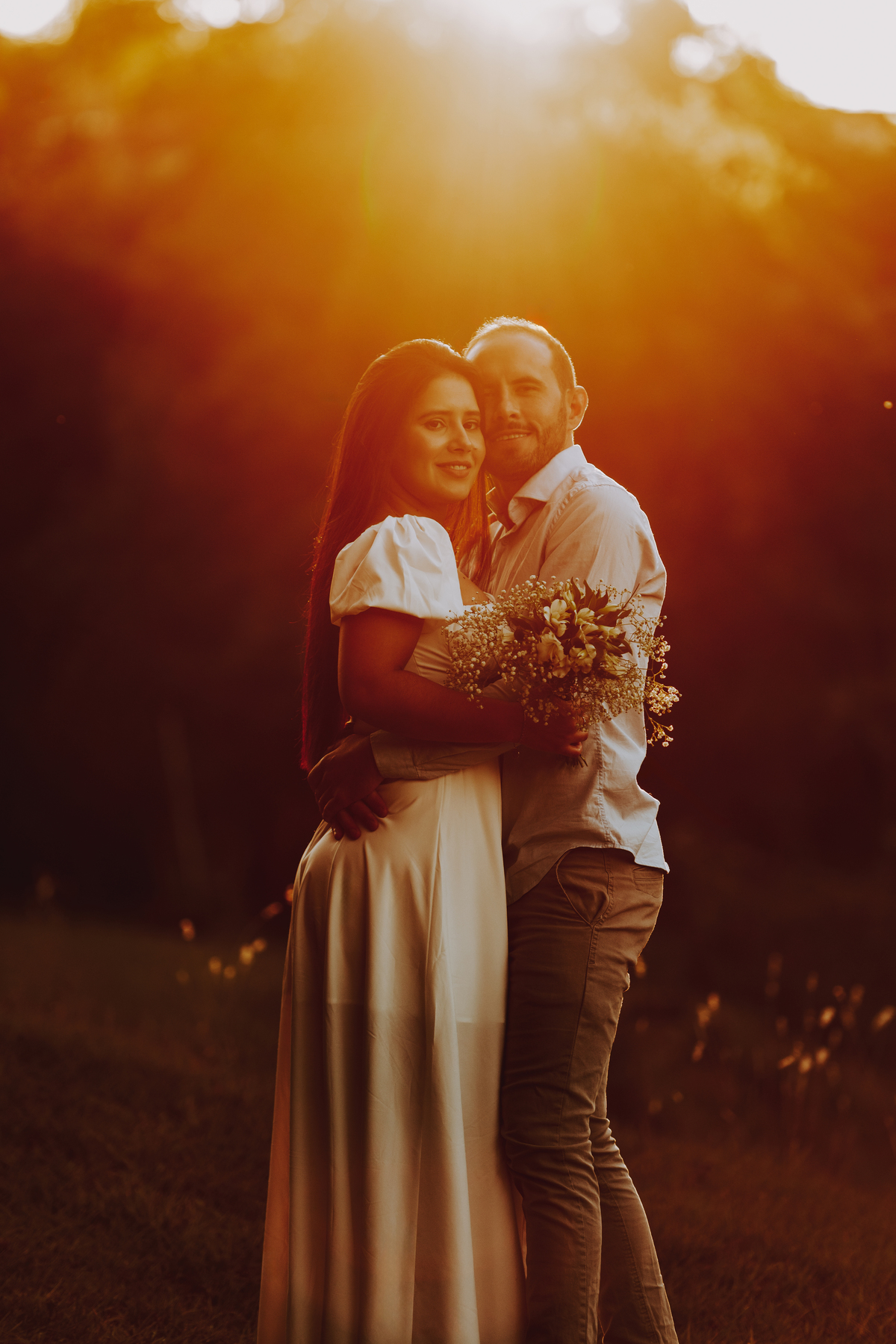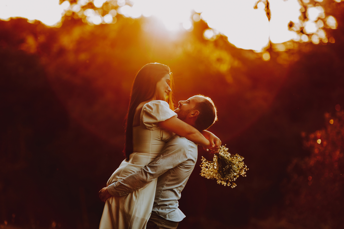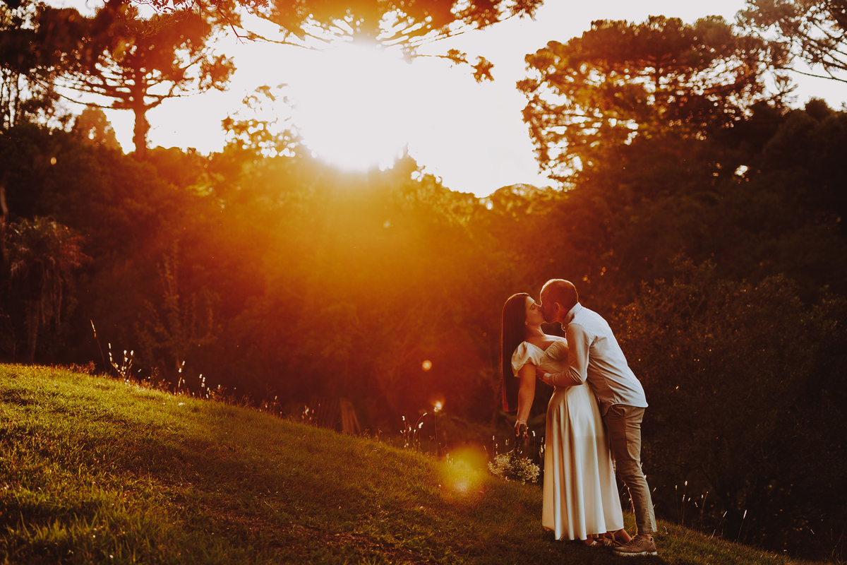 E como se o amor já não transbordasse o suficiente, ao final do ensaio eles acenderam uma fogueira. Sentaram-se juntos, envoltos pelo calor das chamas e da conexão entre eles. O céu escurecia devagar, o silêncio dizia tudo. Era como se o tempo tivesse parado só pra eles… pra celebrar o amor, a entrega, a beleza de viver o que antes era apenas sonho.