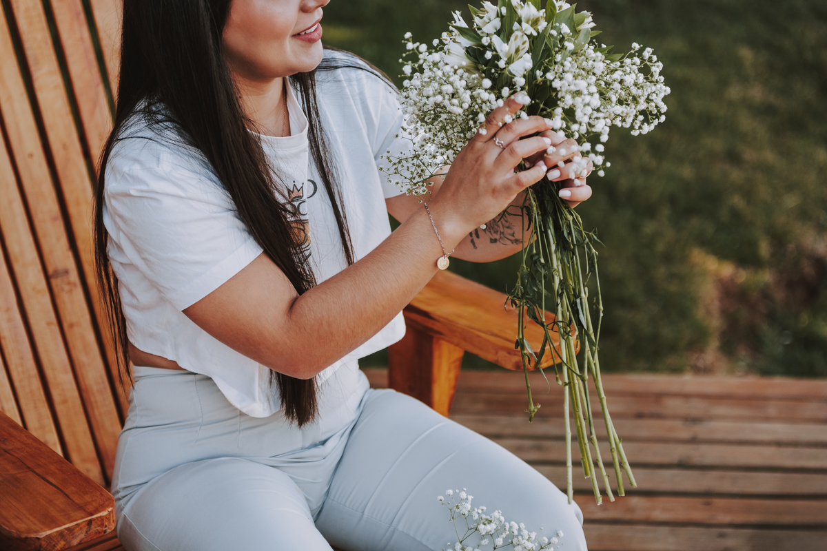 A Betânia e o Gabriel são aquele tipo de casal que parece ter saído de uma daquelas séries românticas que aquecem o coração. Quando chegamos, ela mesma preparava o buquê para as fotos — e havia tanta delicadeza naquele gesto… Era como se cada flor carregasse um pedacinho do sentimento dela, do olhar atento aos detalhes, da doçura de quem vive o amor com alma.